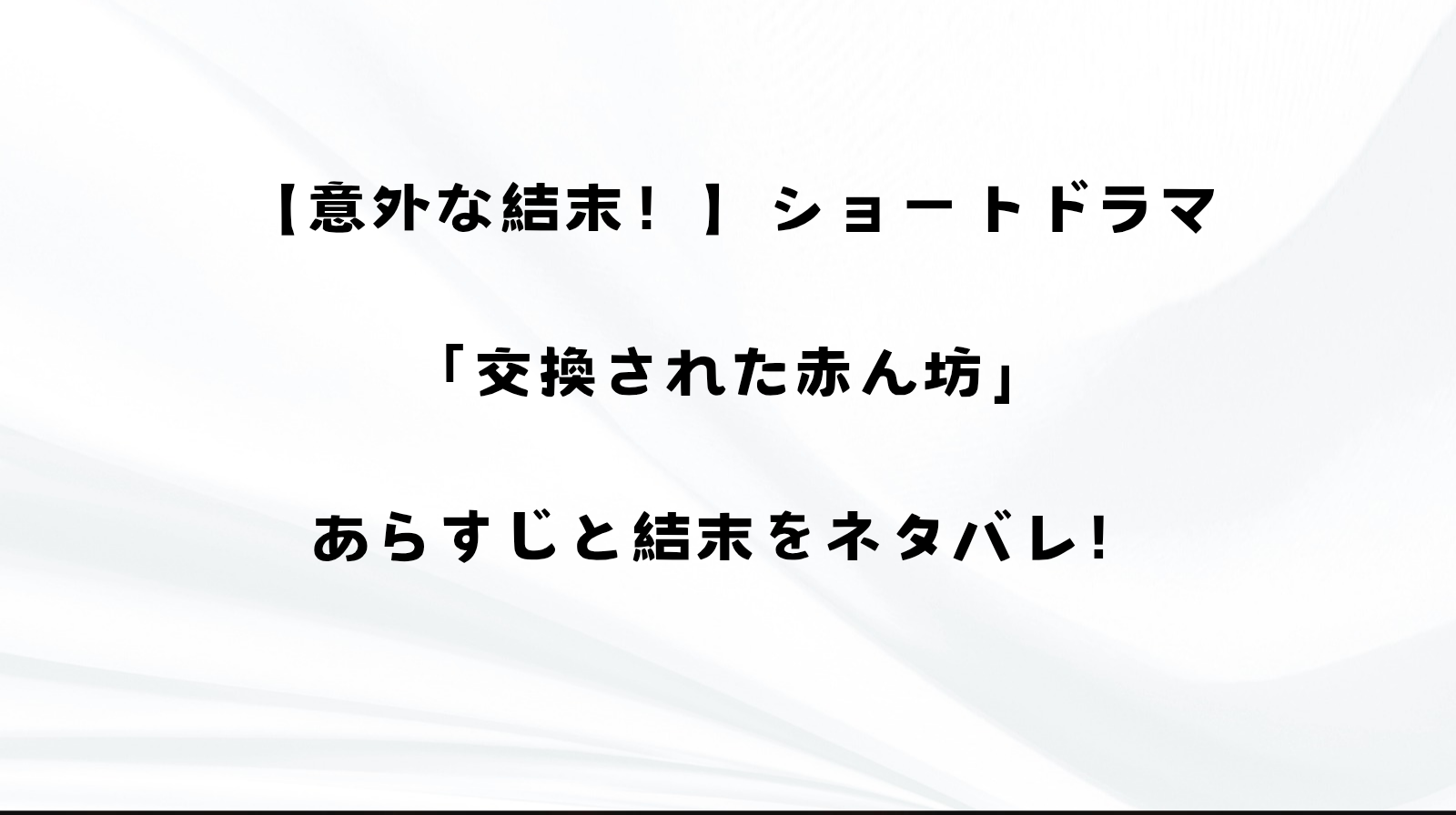 子供の入れ替えは最近のショートドラマでよく見ますが、この「交換された赤ん坊」は、意外な結末となっていますよ。